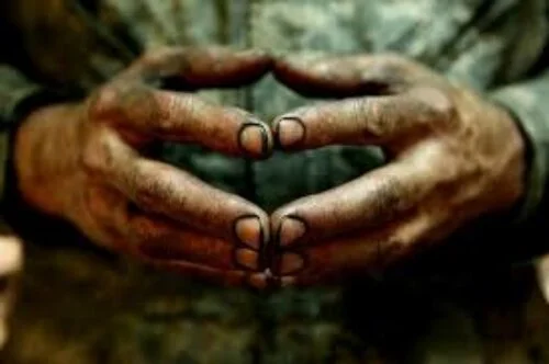 weeding. so much weeding right now. i was deep in the dirt the other day, digging out the velvet grass and tossing back the worms, when i noticed my hands.